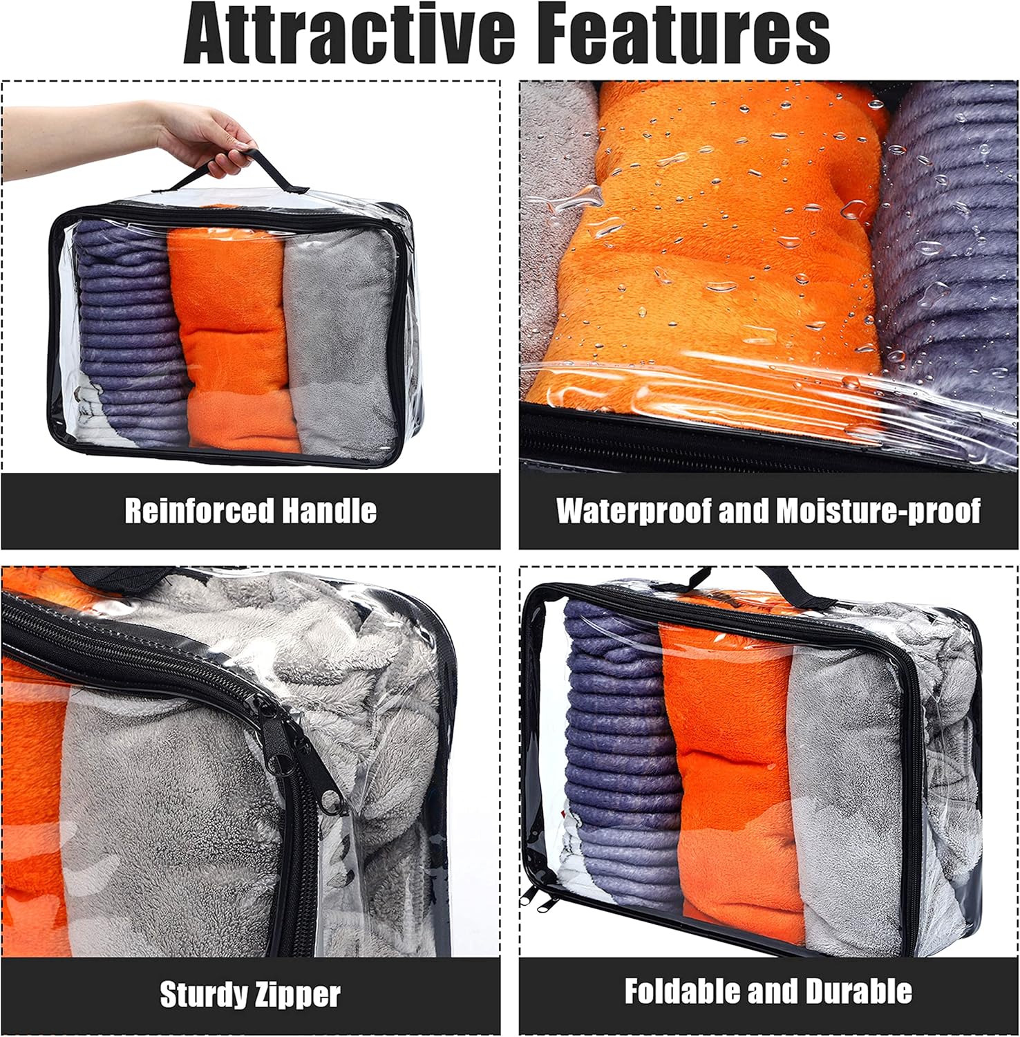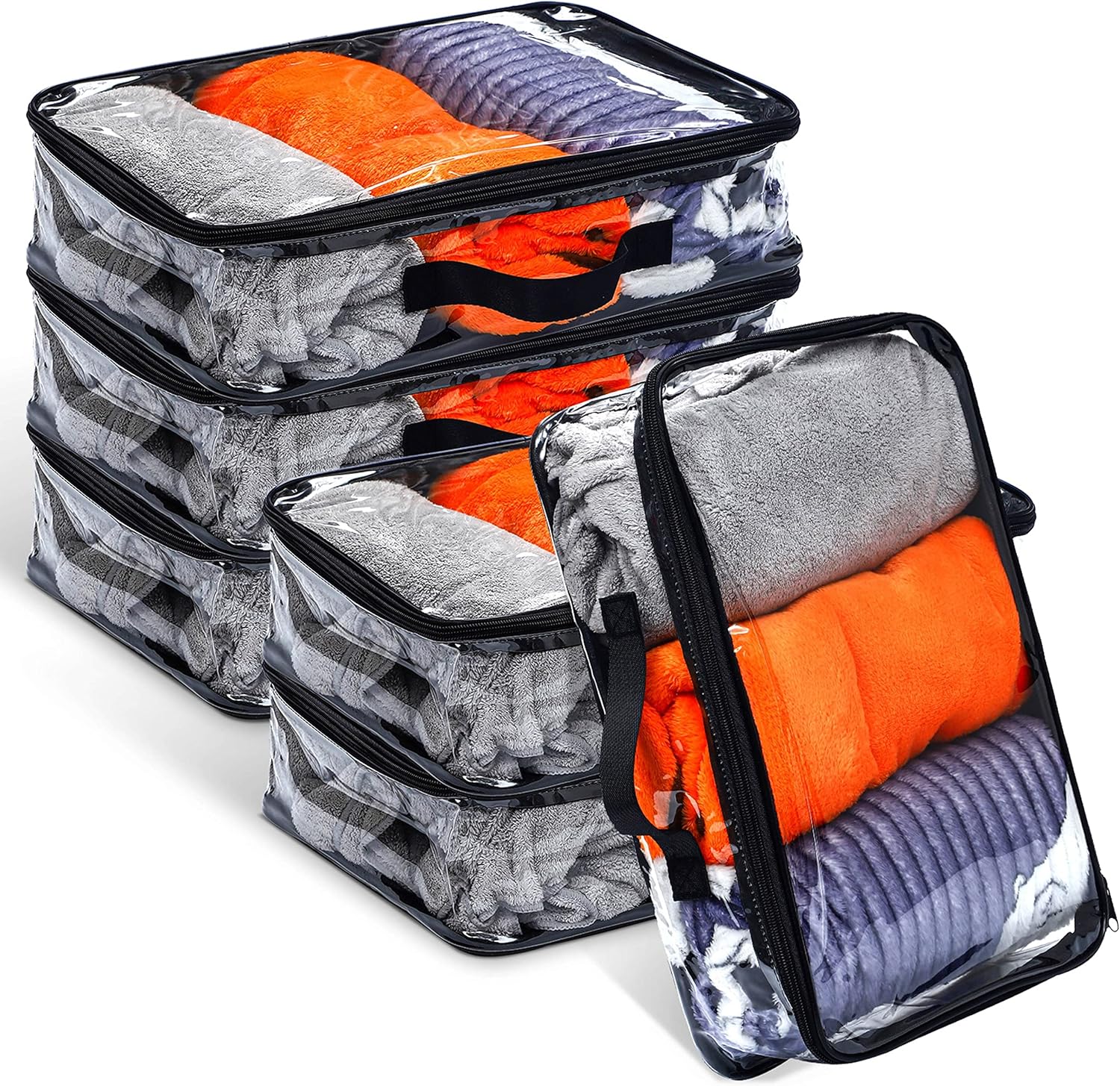 Designed for convenience and efficiency, each multipurpose pouch features a sturdy handle for easy carrying and quick access to your belongings. The transparent design allows you to easily see what’s inside, making it a breeze to find your favorite shirt or dress without rummaging through your suitcase.